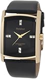 Arm Mns Dressy Sport Watch Black Strap,,Black DialShimmering crystals and sleek gold-tone accents define the Armitron Men's Swarovski Crystal Accented Gold-Tone Black Leather Strap Watch. With a thick, black edge framing the rectangular, black dial, this stylish timepiece features an elegant, gold-tone stainless steel case that extends to secure the smooth, black leather band with matching gold-tone buckle clasp. The elongated dial offers a streamlined design with stunning, double-set crystals at three, six, nine, and 12 o'clock. Gold-tone hour and minute hands and a sweep second hand track the time, and this fashionable timepiece is water resistant to 165 feet (50 meters). Relying on precision Japanese quartz movement, this classy watch is dependable and adds a level of sophistication to the modern man's wardrobe.