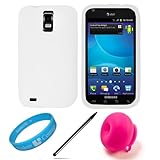 Frost White Soft Rubberized Protective Silicone Skin Cover for T-Mobile Samsung Galaxy S II (Galaxy S2) Hercules SGH-T989 + Dual Tip Stylus Pen + Pink Rubber Suction Stand + SumacLife TM Wisdom*Courage Wristband