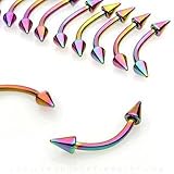 10PC 16G. 4x4mm Spike Rainbow Titanium Anodized Curved Barbell with Spikes Package. 3/8 inch in length