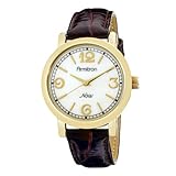 The superb simple design of the Armitron NOW Women's Gold-Toned Watch offers a fun and stylish way to dress up casual and business attire. The round, gold-toned case and bezel show off a highly polished shine. A genuine mother-of-pearl dial features curly, gold-toned, Arabic numerals at the three, six, nine, and twelve o'clock hours and gold-toned matchstick indices at each remaining hour. Other features of this watch that add to its simple and easy-reading design include a black, printed, outside minute track and gold-toned hour, minute, and sweeping second hands, which sharply point out the time and are easy to see against the white mother-of-pearl dial. The comfortable, brown, crocodile leather band securely fastens with a buckle clasp. This timepiece offers reliable Japanese quartz movement and is protected by a durable mineral crystal. The watch is water-resistant to a depth of 165 feet (50 meters).