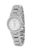 - Swarovski crystal accented bezel; Mother-of-Pearl dial