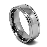 Blue Chip Unlimited - 8mm Grooved Classic Titanium Engagement Band Mens Wedding Ring Anniversary Gift Bridal Ring Size (11)