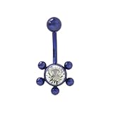 Blue Solid Titanium Belly Ring - 5 Ball Design with Clear Jewel