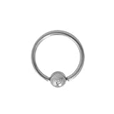High polish solid titanium captive bead ball closure ring. Can be used for belly ring, ear ring, tragus ring, nose ring and nipple ring. High quality body jewelry. Size 18 gauge, length 12mm - 1/2" inch.