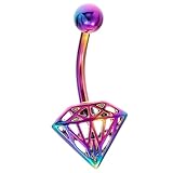Rainbow Bling Diamond Anodized Titanium Belly Button Navel Ring