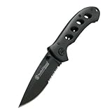 Smith & Wesson SW423BS Oasis Serrated Drop Point Blade Knife, Black Titanium Coated Handle and Blade